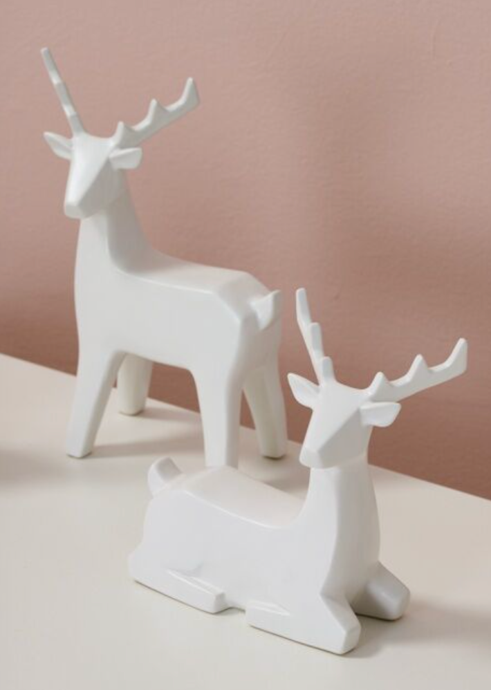 Each deer features a modern geometric silhouette, crafted from smooth matte ceramic that is hand-...