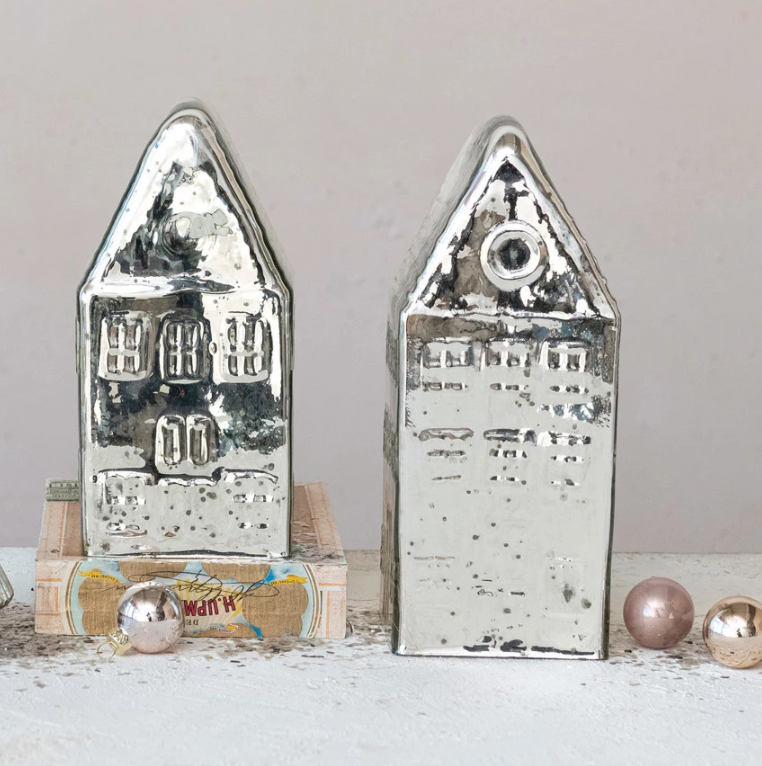 Mercury Glass House w/ Silver Finish, 2 Sizes