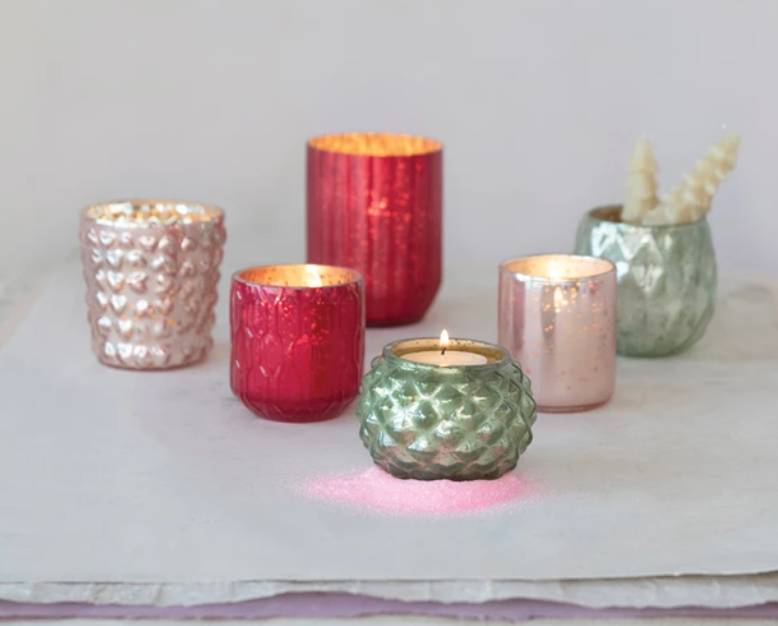 Add a touch of sparkle to your holiday decor or tablescape with these beautiful mercury glass vot...