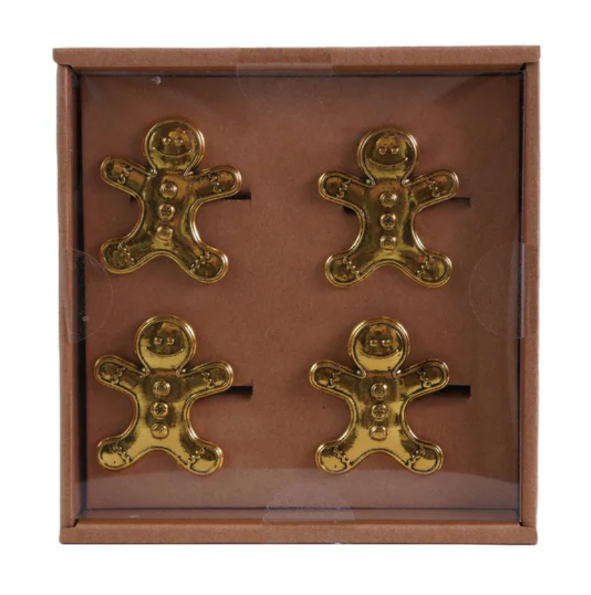 Bring festive charm to your table with this boxed set of 4 napkin rings featuring gingerbread men...
