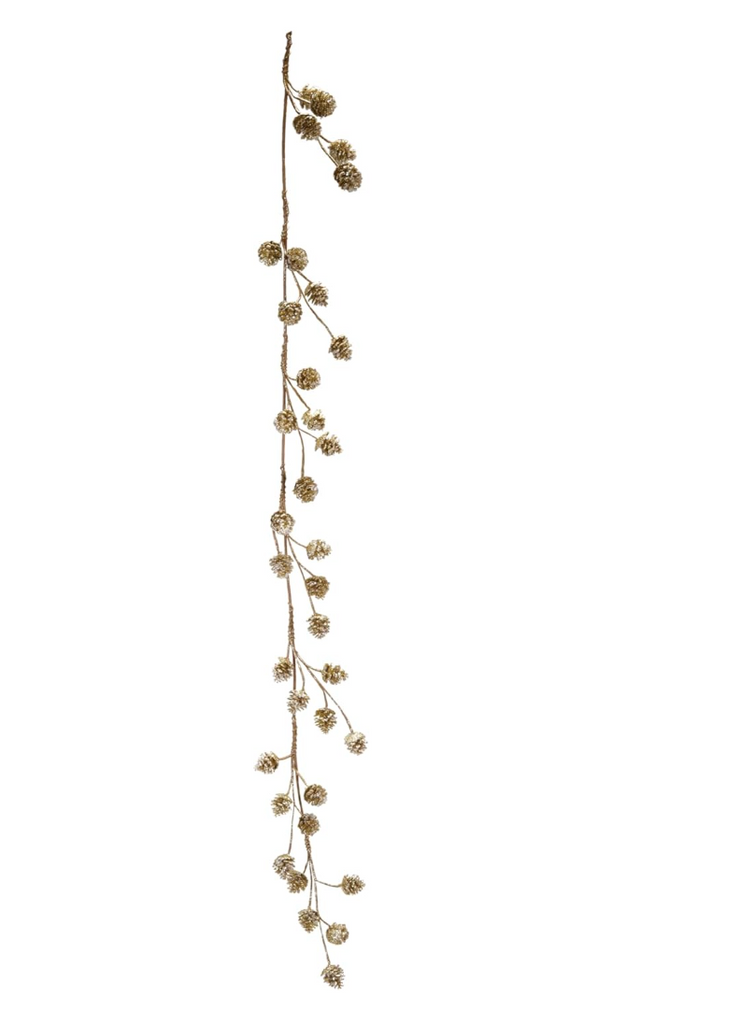 Enhance your festive décor with this glittering plastic pinecone garland in a radiant gold finish...