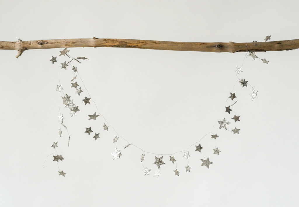 This captivating silver glitter star garland adds a touch of festive cheer and elegance to any ho...
