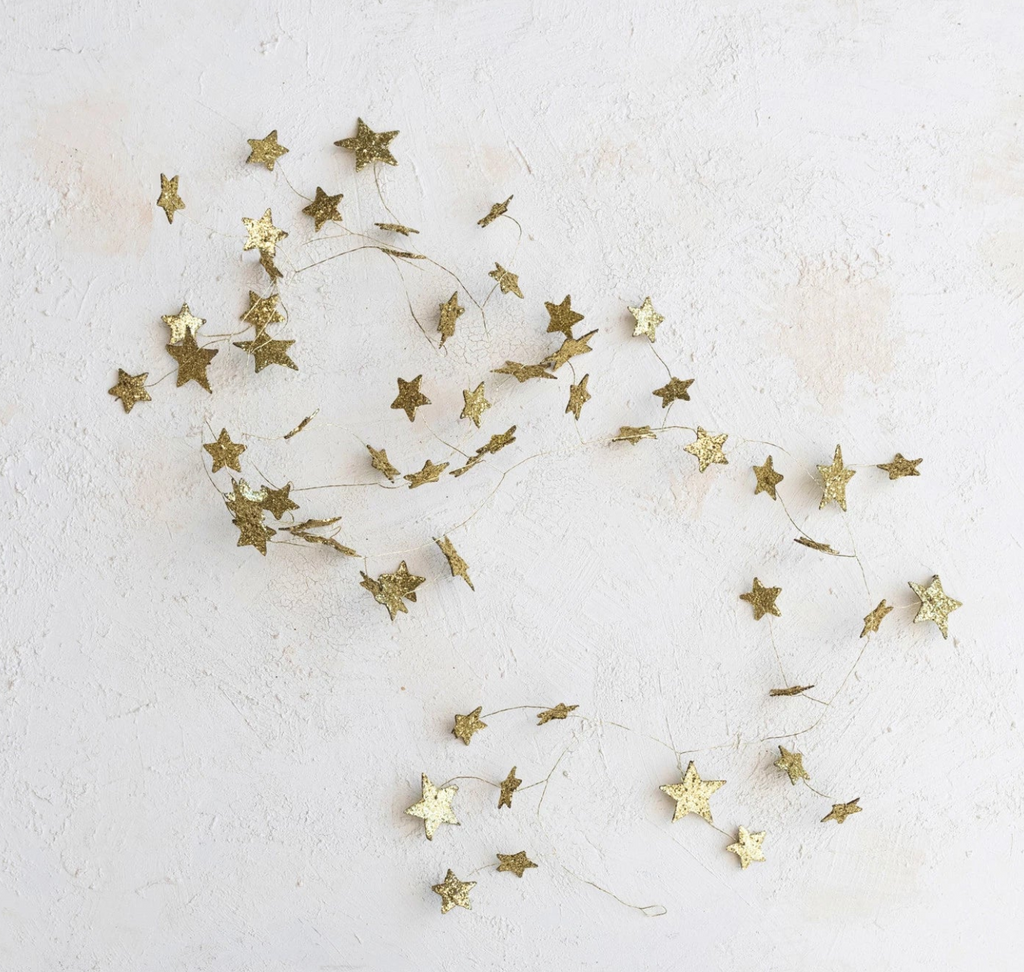 This captivating gold glitter star garland adds a touch of festive cheer and elegance to any holi...