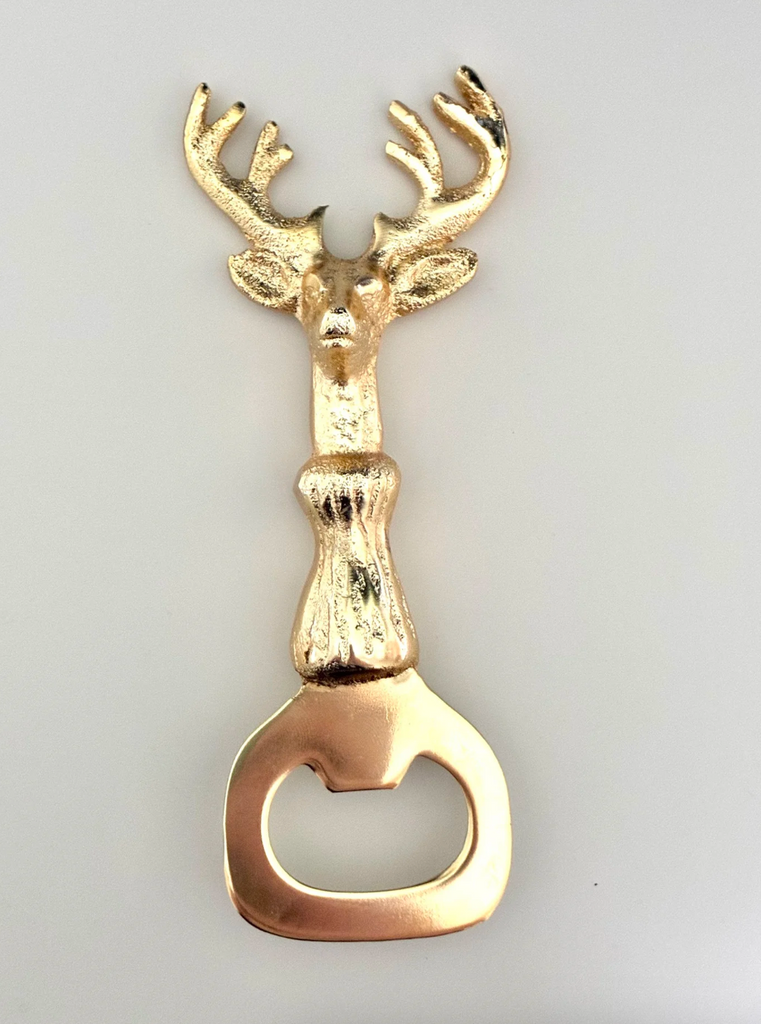 Crafted from cast aluminum and stainless steel, this bottle opener features a detailed deer handl...