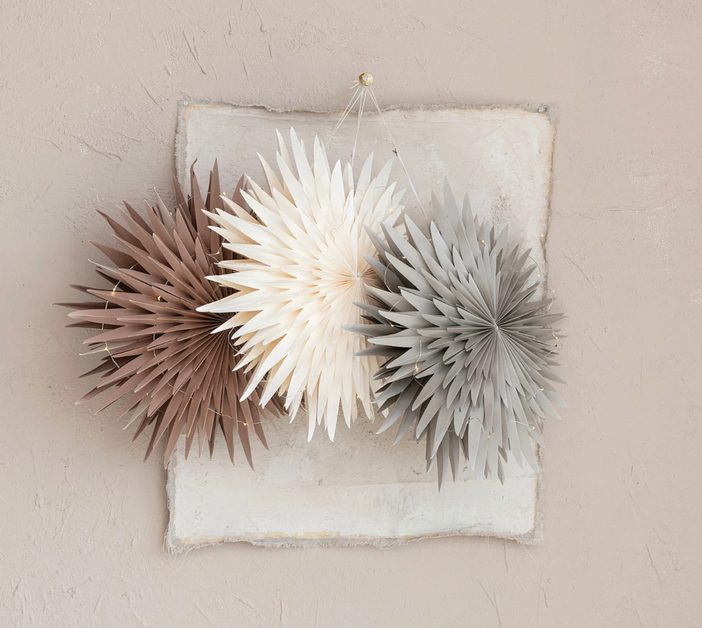 This intricate paper-folding snowflake ornament comes in three colors: cream, grey, or brown, eac...