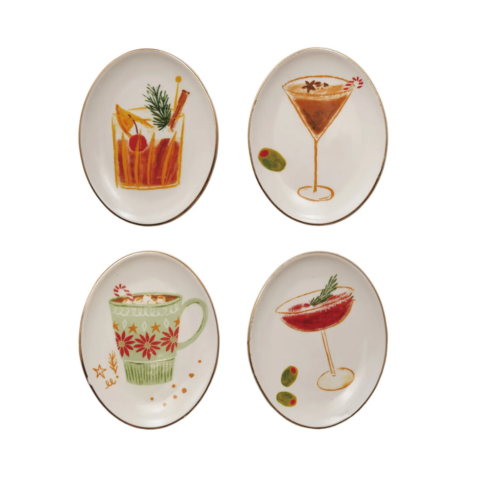 This stoneware oval dish features a unique cocktail image and gold electroplating on the edges, a...