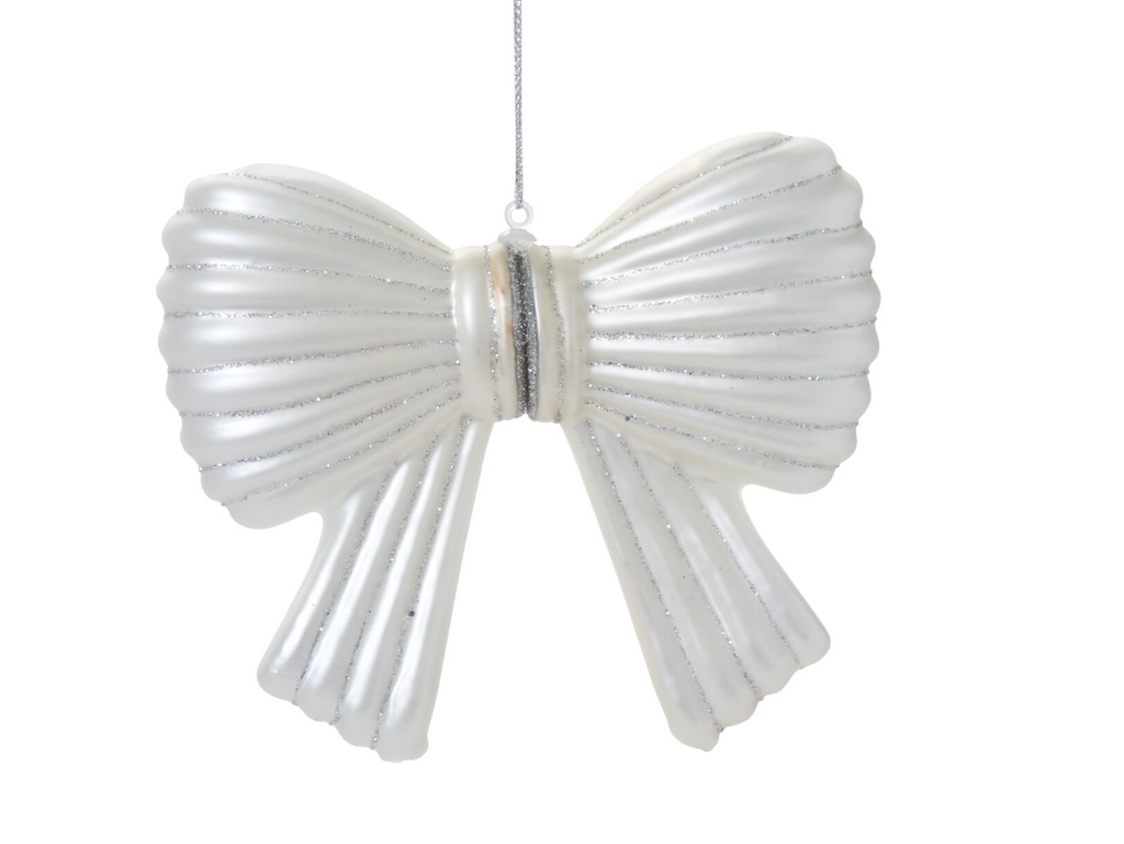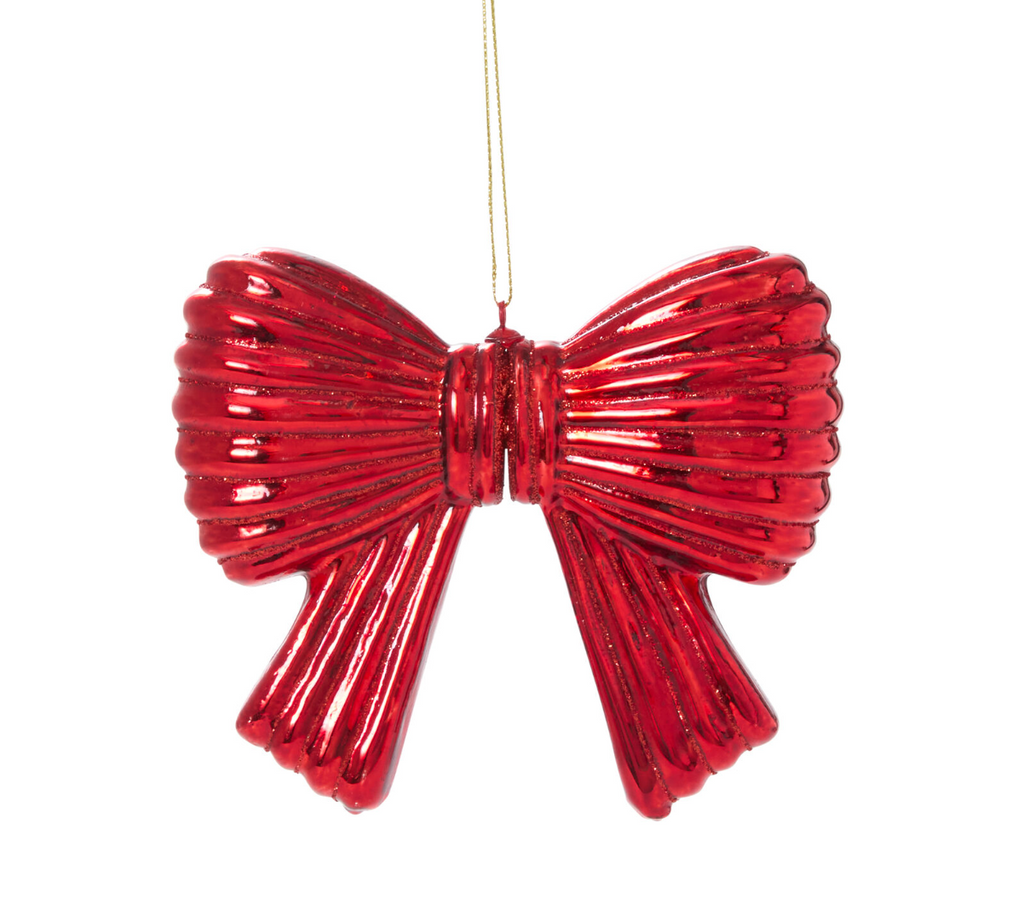 Trim the tree in festive style with this cute little ornament, a lightweight glass holiday bow in...