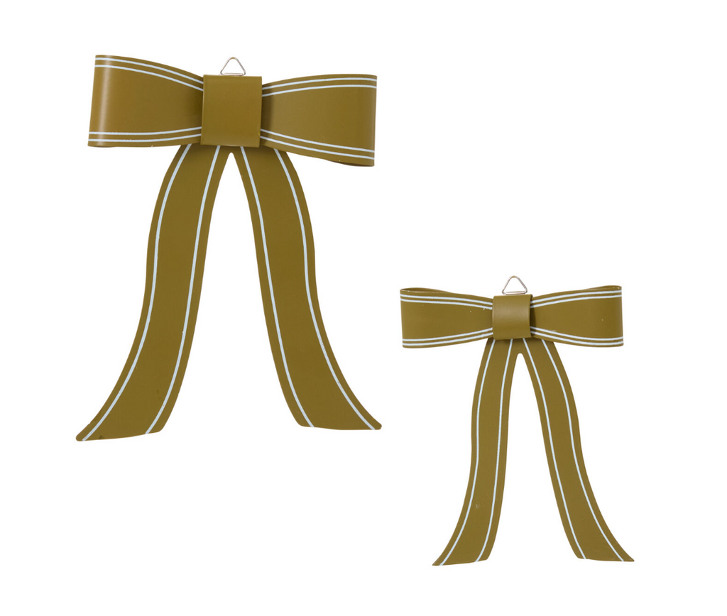 White Metal Bow w/ Red Stripes, 2 Sizes