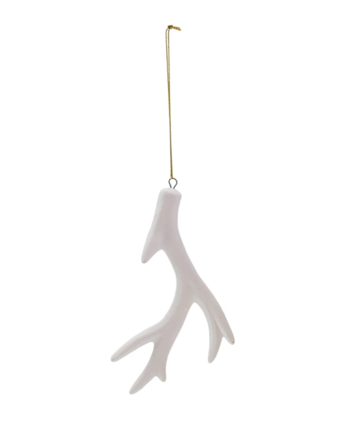 This stoneware bisque ornament features a unique deer antler design with an elegant matte finish,...
