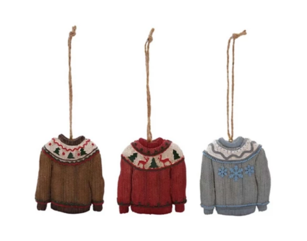 Add a cozy touch to your holiday décor with this resin sweater-shaped ornament, designed for dura...