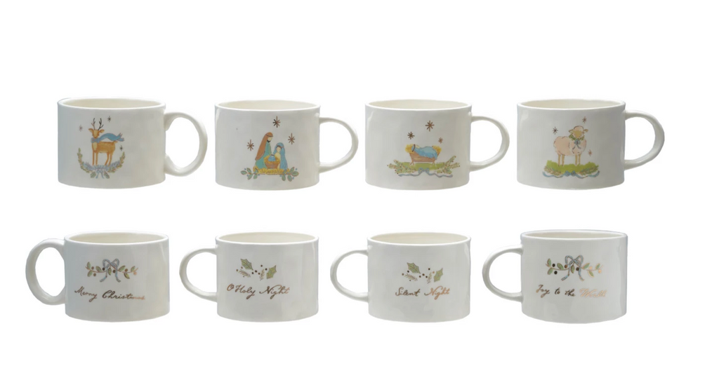 Elevate your drinkware with this festive stoneware mug, featuring a holiday saying/design and a s...