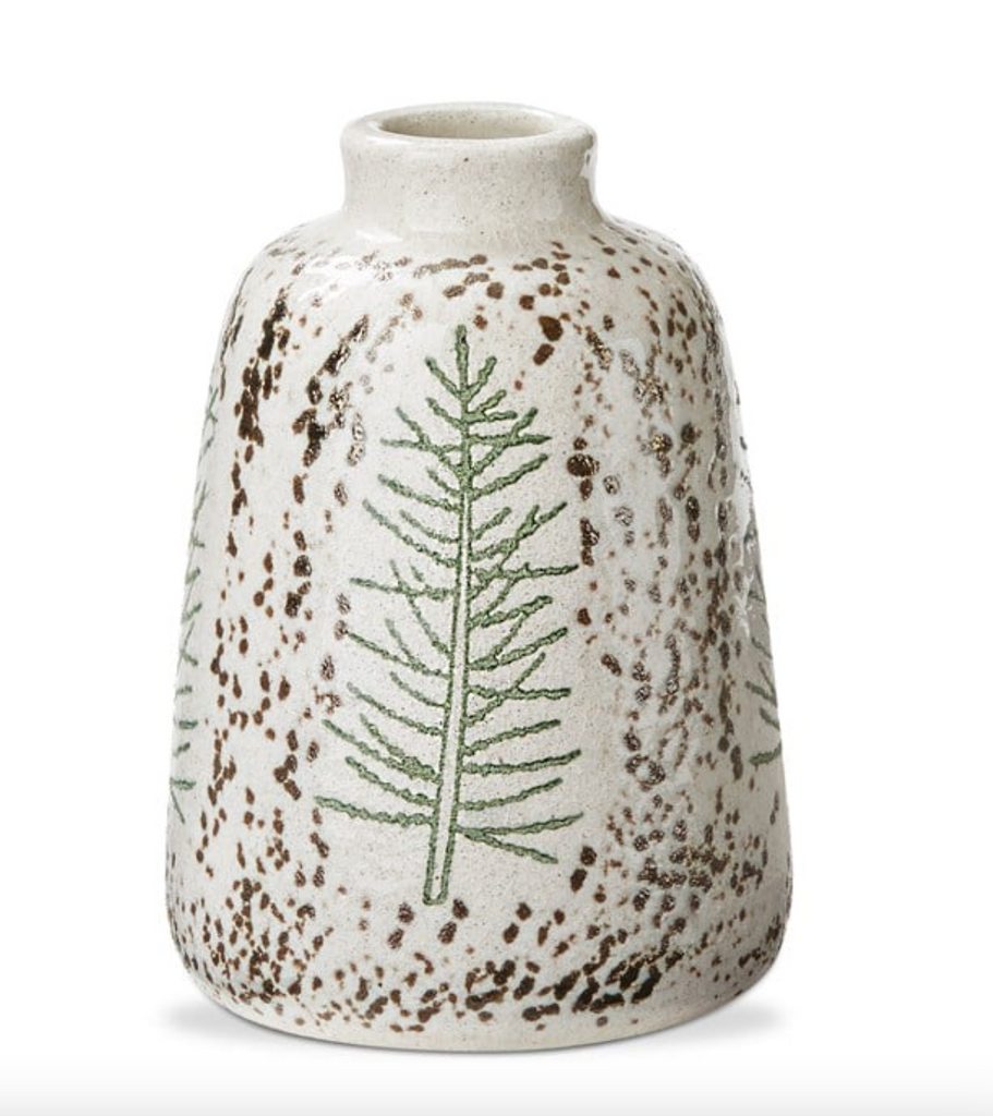This pine tree stoneware vase is a perfect way to add a touch of winter to your home decor. Featu...