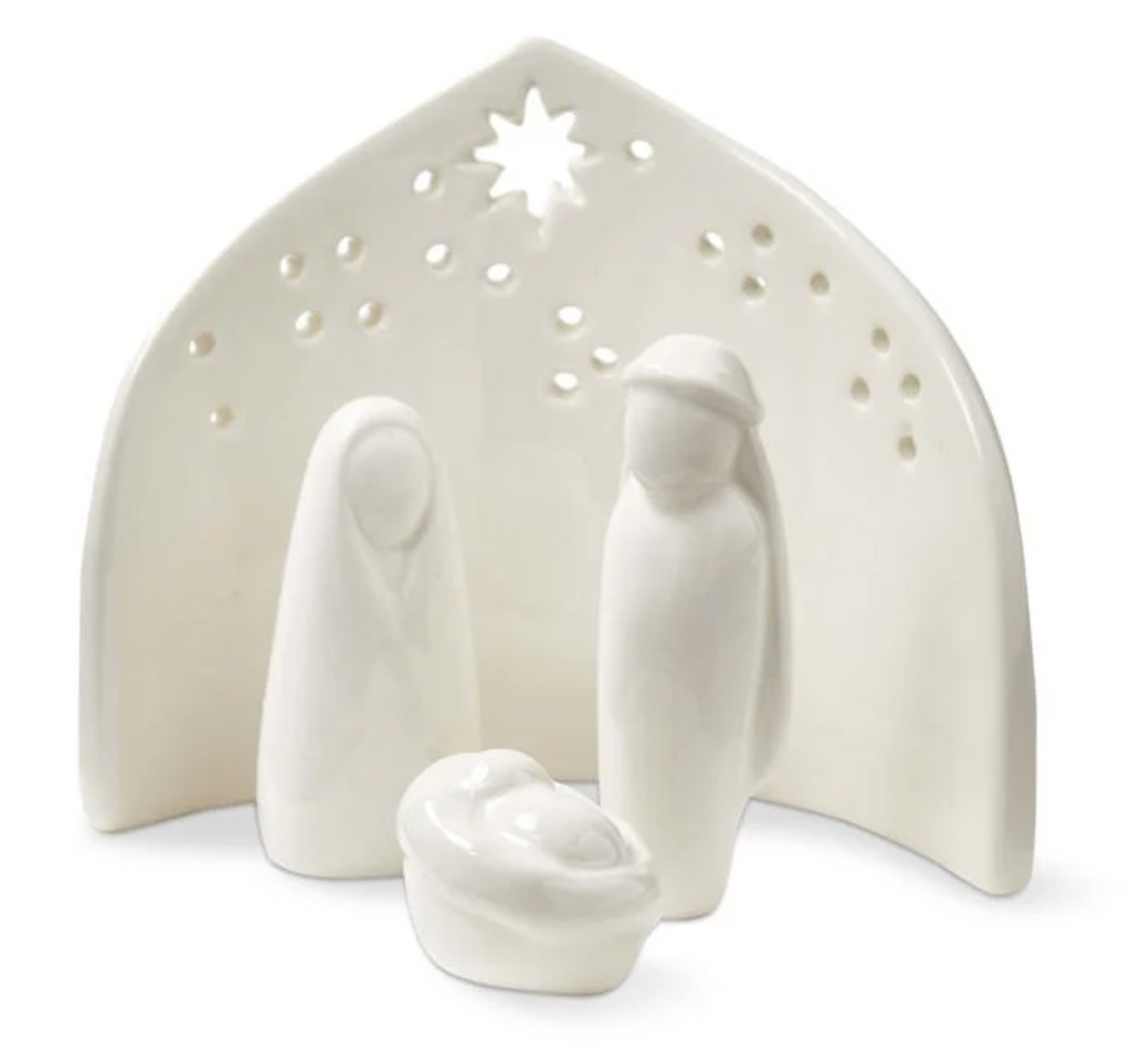 Celebrate Christmas with this beautiful ceramic nativity scene. This set includes Joseph, Mary, a...