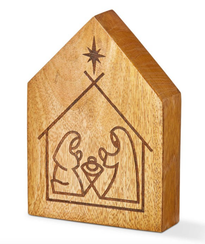 This handcrafted nativity scene is made from 100% wood and features intricate wood-burned details...