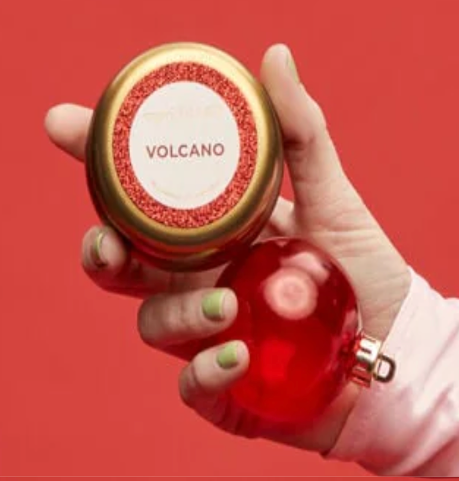 This little holiday hunk is on everyone's wish list! Its charming size is filled tropical fruits and sugared citrus and topped with red gritter. The Volcano Glam Mini Tin is the perfect addition to any holiday gift or stocking!